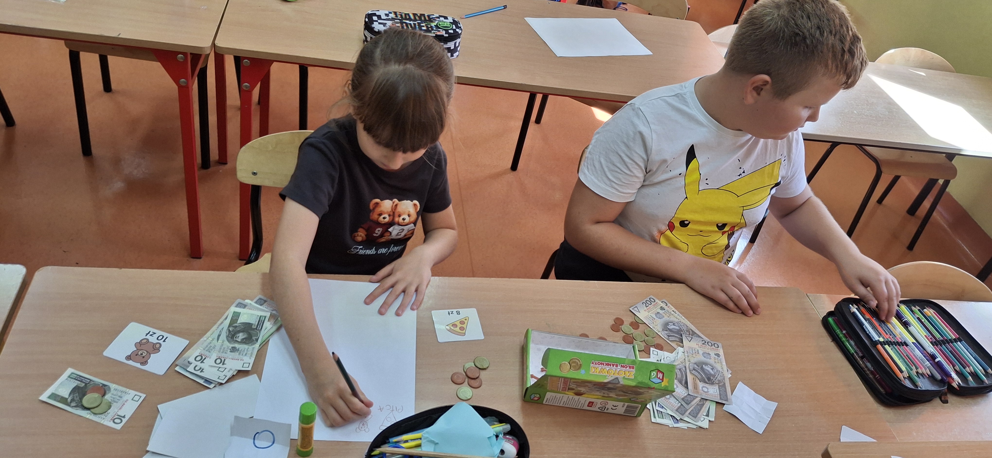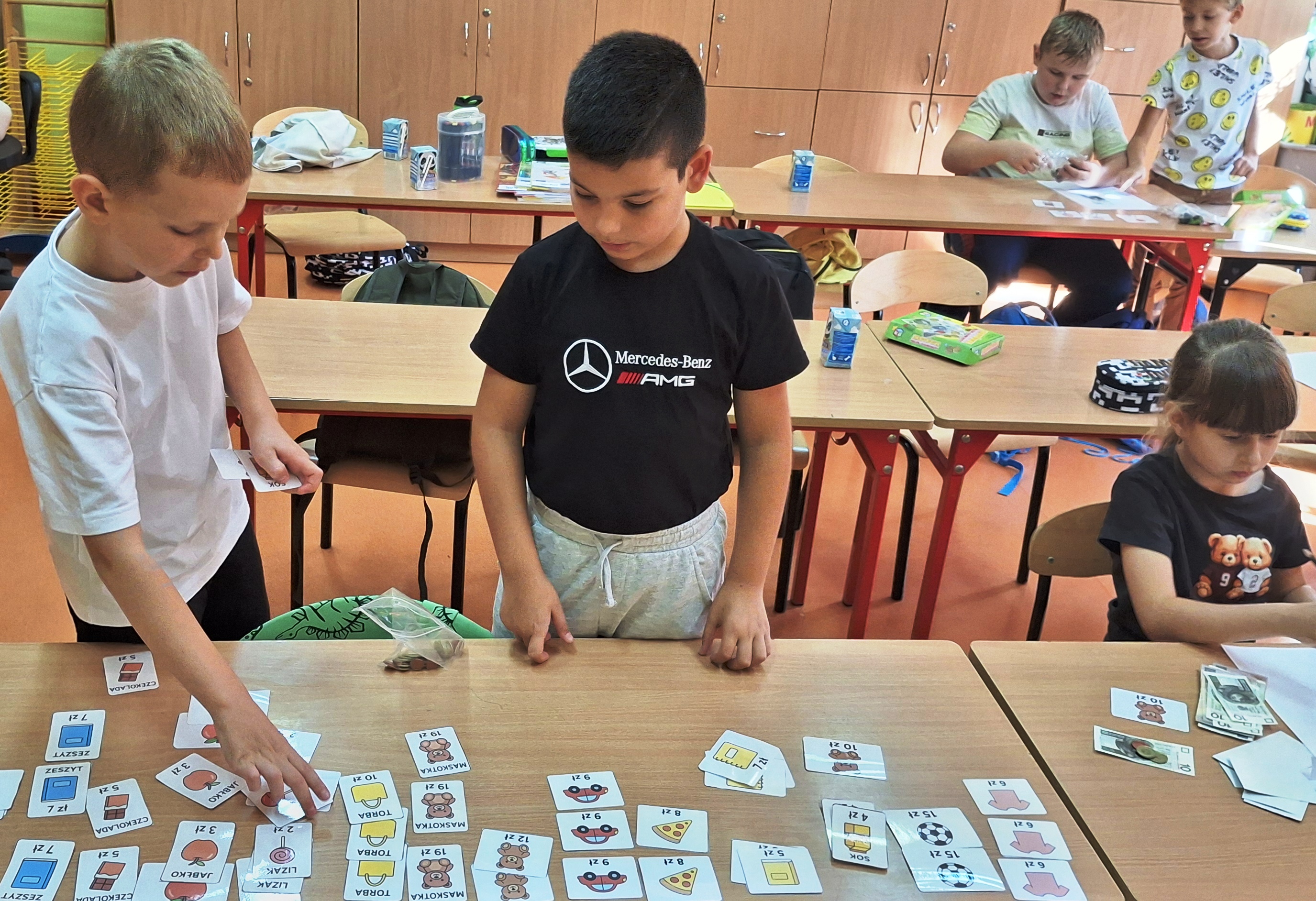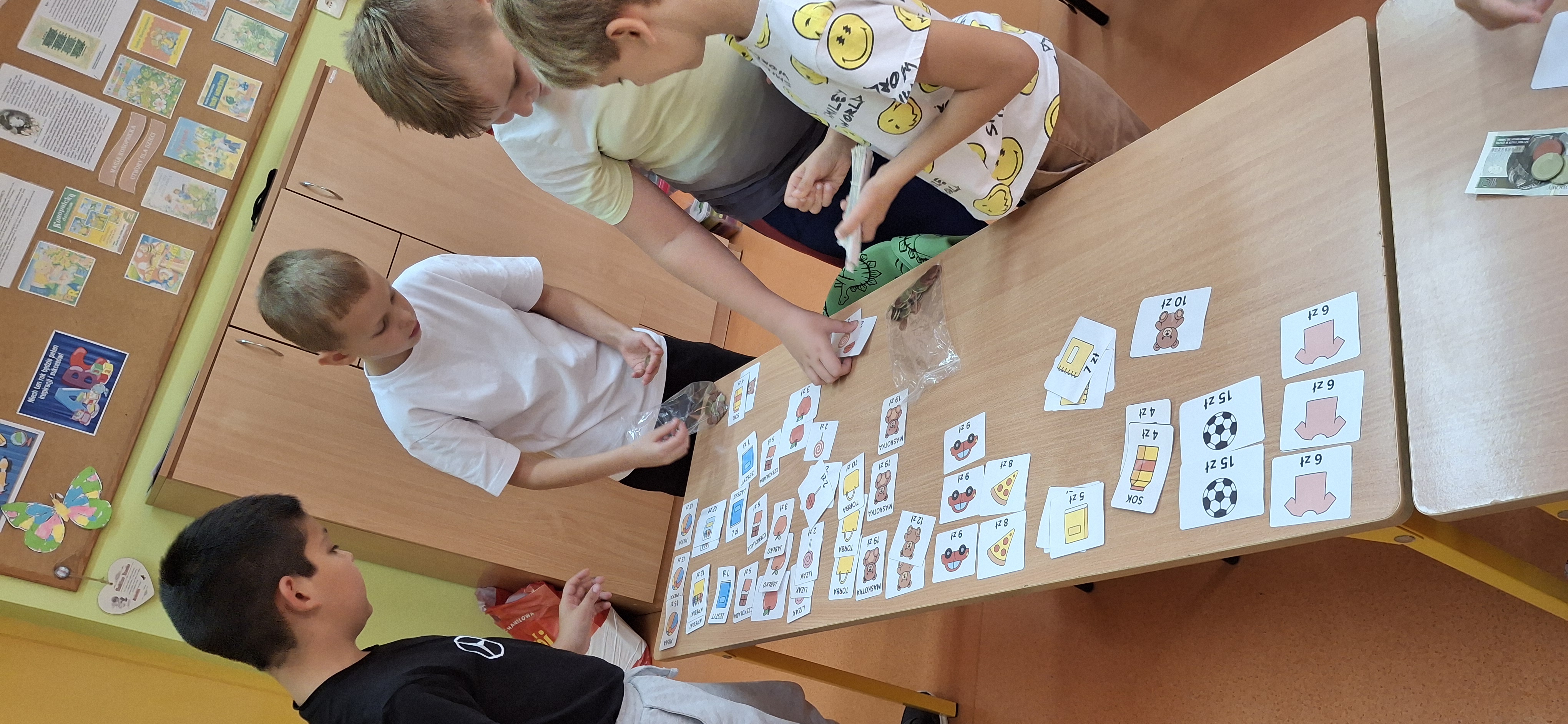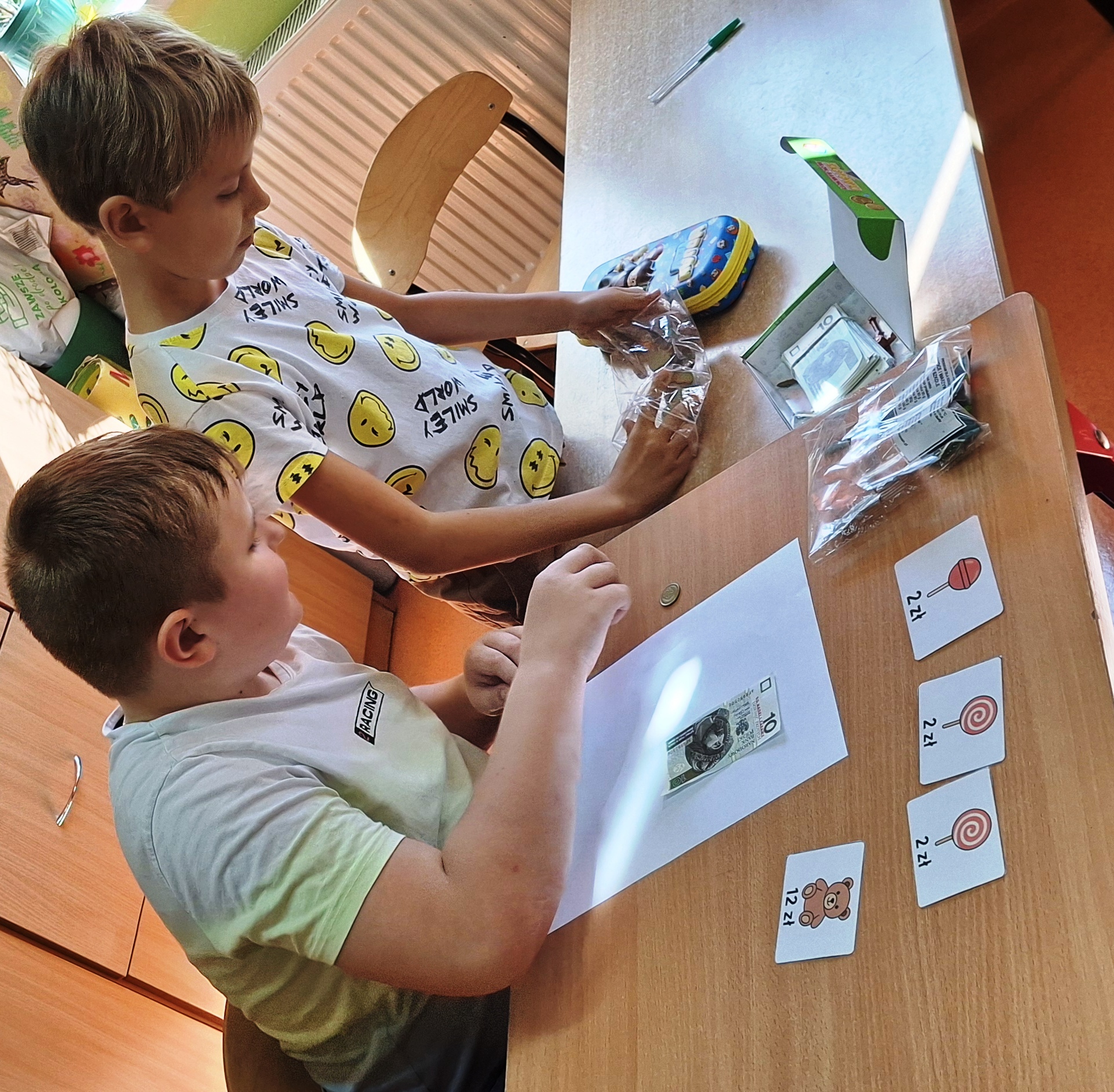Kolejne zajęcia przeniosły nas do świata zakupów. W zabawie w sklep każdy mógł zostać klientem. Uczniowie liczyli ceny, wydawali resztę, planowali zakupy i uczyli się gospodarowania budżetem. Zabawa okazała się świetnym treningiem matematycznego myślenia.