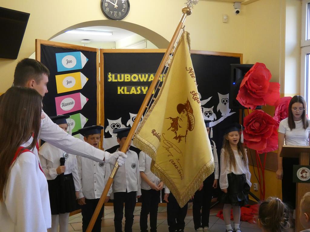 Tymi słowami 20 października b.r. pierwszaki z naszej szkoły złożyli uroczyste ślubowanie oraz zostali pasowani na pełnoprawnych uczniów Szkoły Podstawowej im. M. Konopnickiej w Radolinie. W tej ważnej chwili naszym małym bohaterom towarzyszyli: Burmistrz Goliny pan Mirosław Durczyński, Grono Pedagogiczne, rodzice oraz cała społeczność szkolna. Pierwszoklasiści przedstawili swoje umiejętności artystyczne w krótkim montażu słowno- muzycznym, grając, śpiewając i recytując. Wśród uczniów powitali ich również starsi koledzy z klasy VIII, wręczając drobne upominki, a także przewodnicząca Rady Rodziców pani Justyna Jabłońska. Dyrektor szkoły podziękowała małym bohaterom za przygotowanie do tego uroczystego dnia, a rodzicom i wychowawczyni życzyła wielu sukcesów, zadowolenia z dzieci i owocnej współpracy.