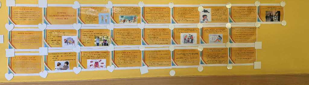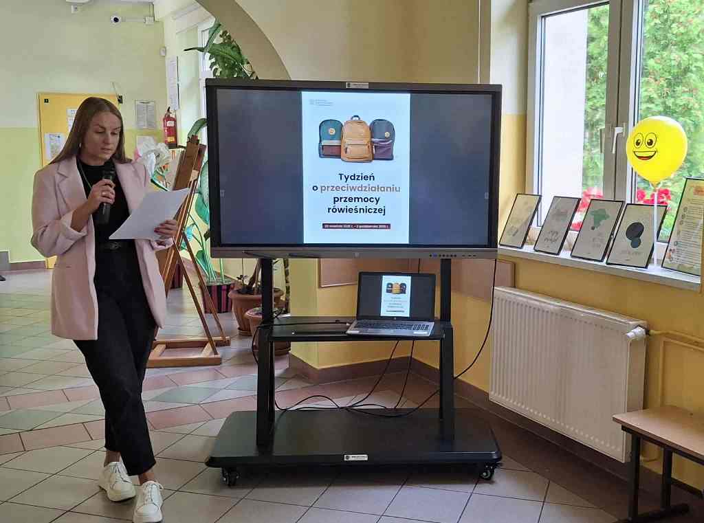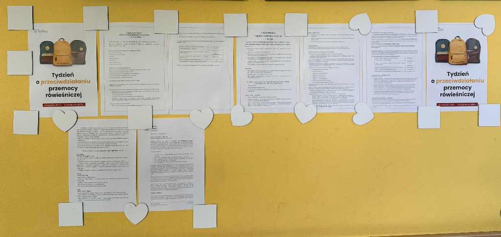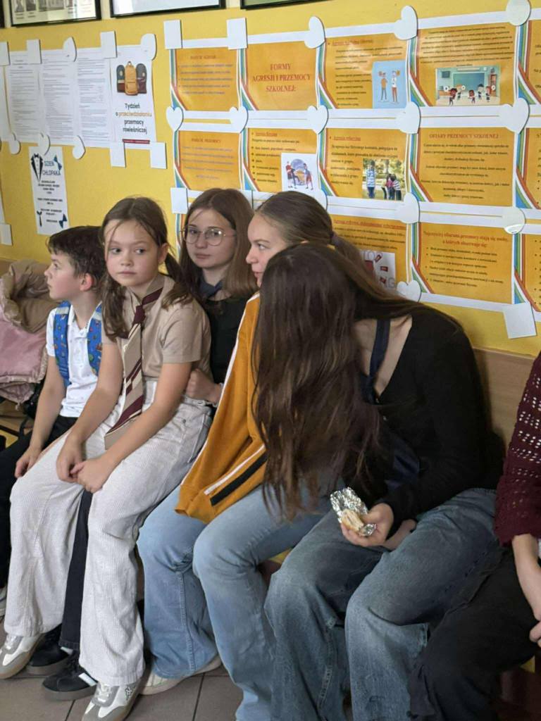 Pierwszy dzień rozpoczęliśmy od krótkiego apelu, podczas którego przedstawiono, jak ważny jest szacunek, empatia i wzajemna życzliwość w codziennym życiu szkolnym. Na korytarzu pojawiła się również tematyczna gazetka przygotowana przez pedagogów, a klasy obejrzały krótki film edukacyjny o przyjaźni i współpracy.