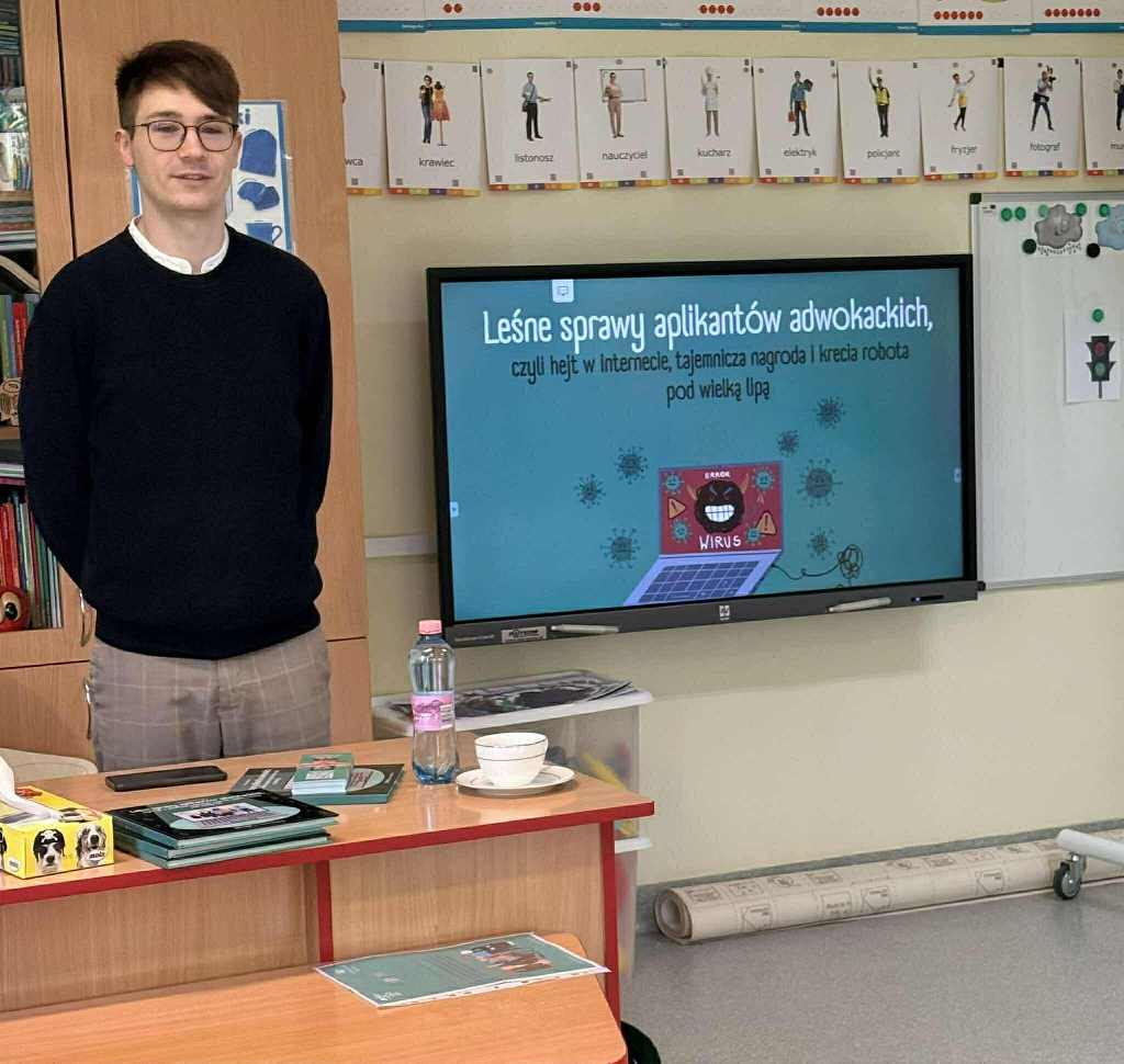 Na podstawie książki „Leśne sprawy aplikantów adwokackich, czyli hejt w Internecie, tajemnicza nagroda i krecia robota pod wielką lipą” uczniowie dowiedzieli się, czym jest hejt, jak bezpiecznie korzystać z sieci oraz jak reagować, gdy spotkają się z cyberprzemocą.