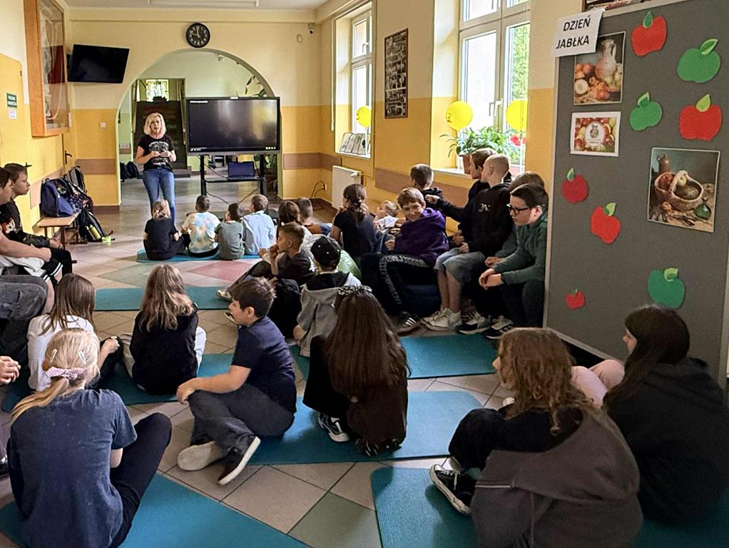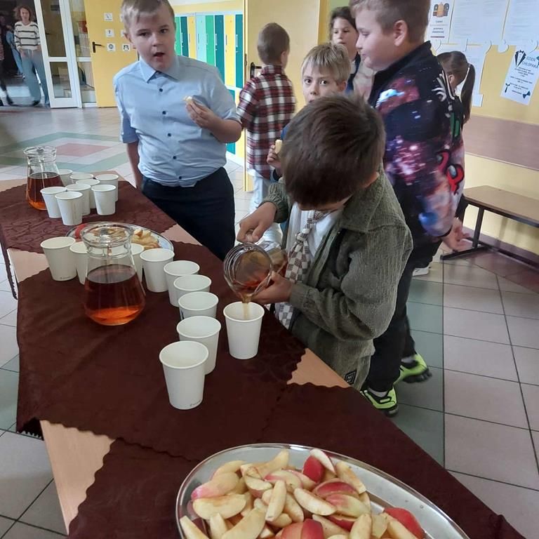 imgimgimgimgimgimgimgimgimgimgimgDzisiaj w naszej szkole obchodziliśmy Dzień Jabłka - święto zdrowia i radości. Korytarz szkolny wypełnił się zapachem świeżych jabłek oraz kolorową dekoracją. Uczniowie dowiedzieli się wielu ciekawostek o jabłkach, a także mogli ich spróbować.