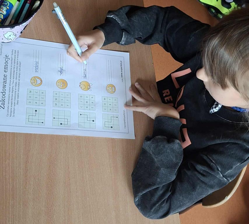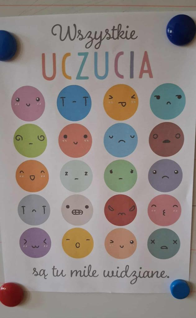 Dzisiejszy dzień upłynął nam na pracy z kartami emocji podczas warsztatów tematycznych, rozmowach i przekazywaniu sobie życzliwych wiadomości poprzez Skrzynkę Dobrych Słów oraz oglądaniu filmu edukacyjnego: „Nie daj się – rodzaje przemocy”.