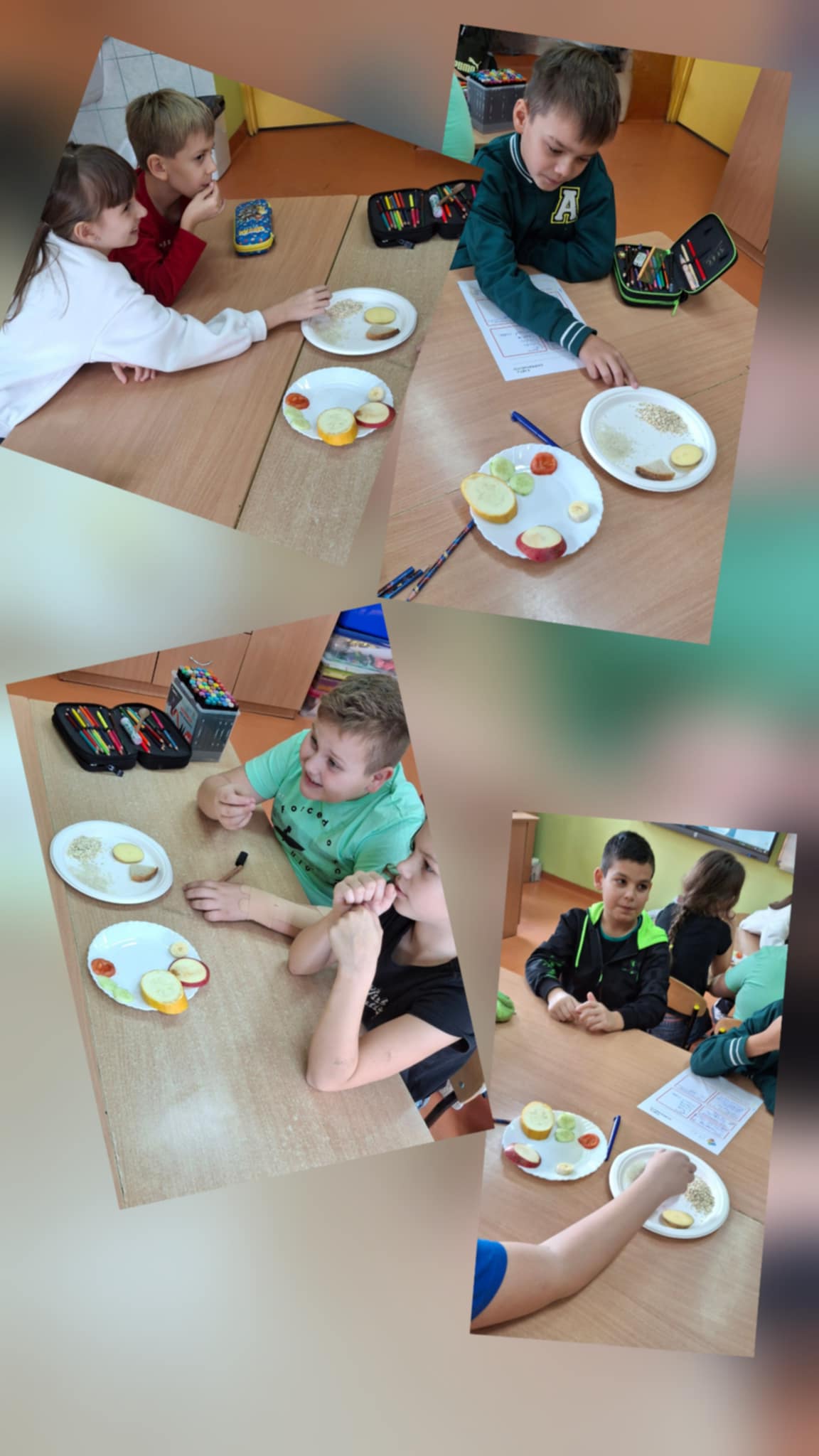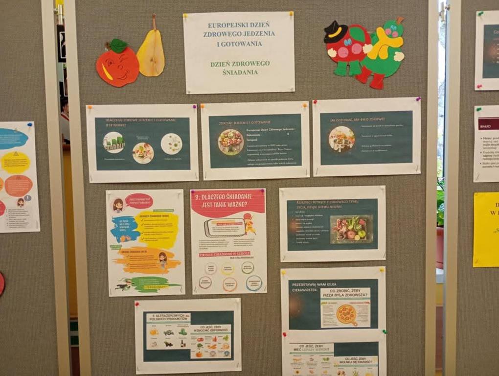 Po zakończeniu przygotowań wszystkie klasy wystawiły swoje śniadaniowe propozycje na długim stole ustawionym na szkolnym korytarzu. Barwne talerze i miski przyciągały wzrok, a zapach świeżych owoców i warzyw unosił się w całej szkole.