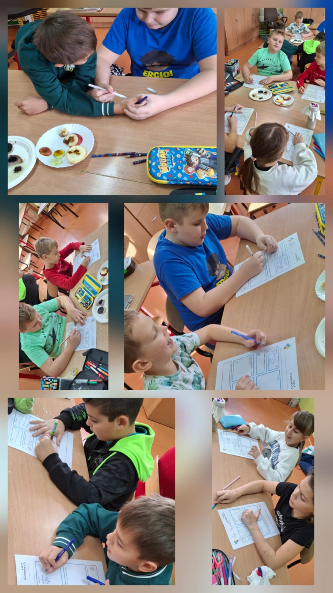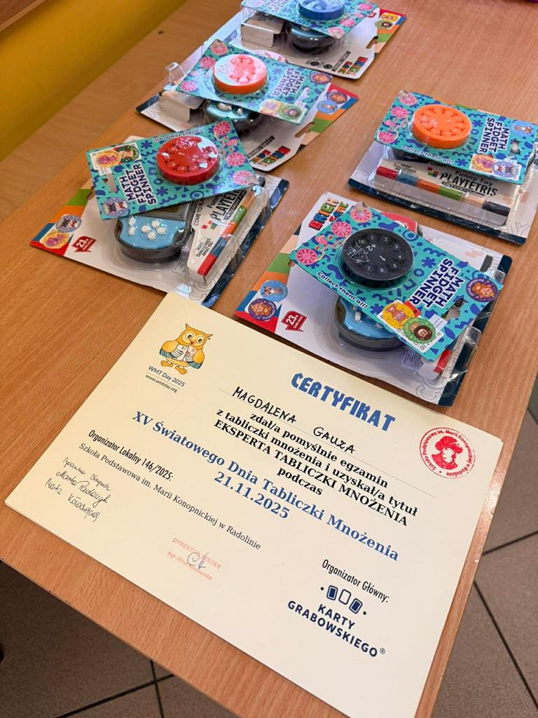 Młodsi uczniowie również aktywnie uczestniczyli w obchodach dnia – utrwalali tabliczkę mnożenia poprzez różnorodne formy zabaw: kolorowanki matematyczne, łamigłówki, zadania logiczne i krótkie quizy. Dzięki temu nauka stała się dla nich przyjemnością i okazją do twórczej aktywności.