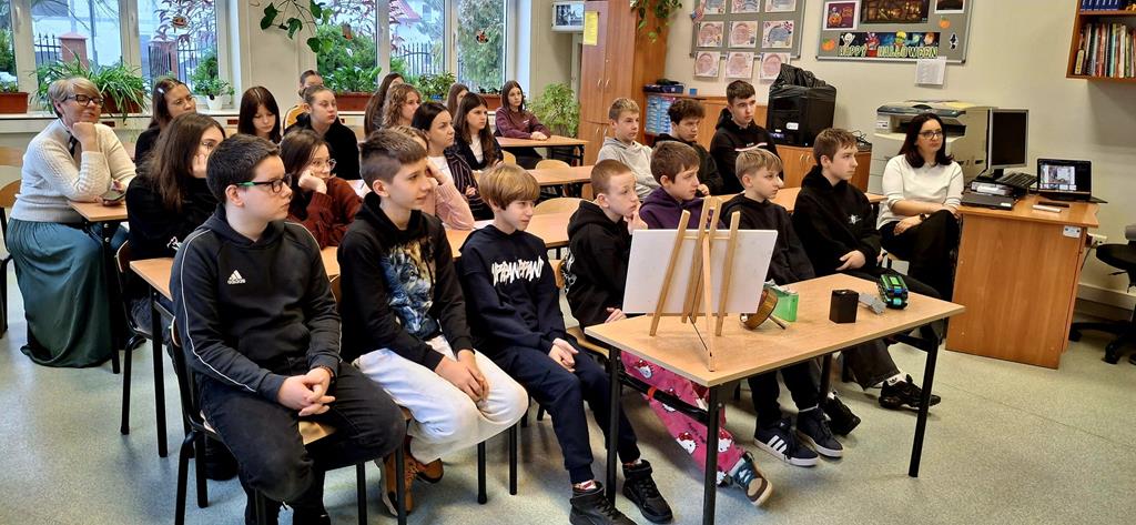 Prowadząca przedstawiła uczniom w jaki sposób zmieniał się klimat na naszej planecie przez około 10 tys. lat oraz wskazała jakie skutki miała rewolucji przemysłowej na przełomie XIX i w XX wieku na proces ocieplania naszej planety. Przedstawiła możliwości działań, aby choć w małym stopniu zmniejszyć emisję gazów cieplarnianych i zanieczyszczeń. Jednym z możliwości jest elektromobilność. Oprócz aspektów typowo ekologicznych pani Agata zwróciła szczególną uwagę na bezpieczne korzystanie z hulajnóg elektrycznych, na konieczność używania kasków oraz przestrzegania zasad ruchu drogowego i poruszania się z właściwą prędkością.