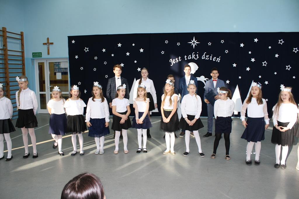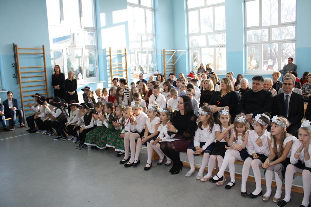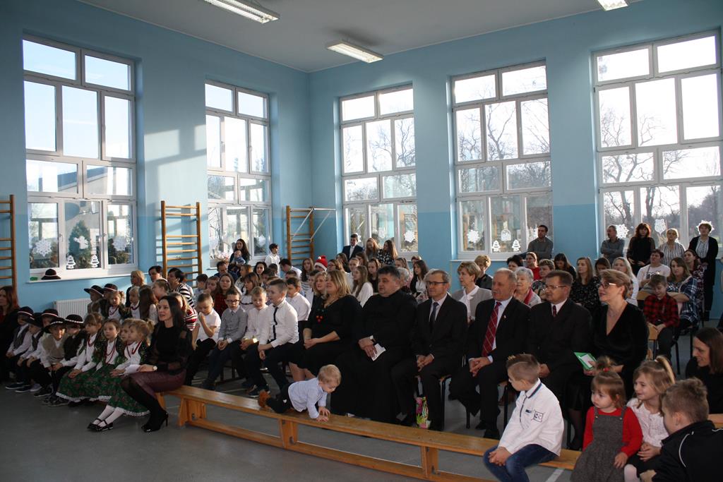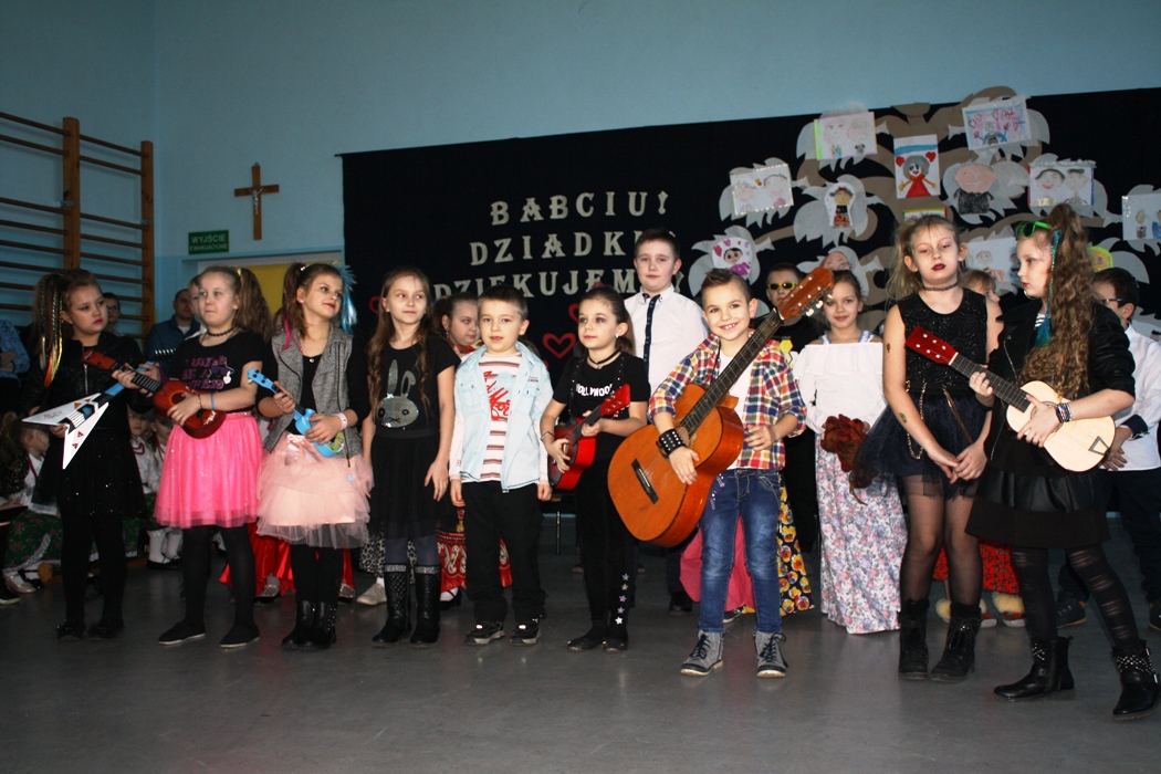 W dniu 21.01.2020 r. w naszej szkole odbyła się uroczystość z okazji Dnia Babci i Dziadka. Pani Dyrektor Alina Kozłowska przywitała wszystkich przybyłych gości ciepłymi słowami. Podkreśliła jak dużą rolę Babcie i Dziadkowie spełniają w życiu swoich wnuczek i wnuków. Złożyła wszystkim gościom również najserdeczniejsze życzenia.. Natomiast chłopcy z klasy II w imieniu wszystkich wnuków przywitali uczestników spotkania i zaprosili na program słowno-muzyczny w wykonaniu grup przedszkolnych oraz uczniów klas I-III.