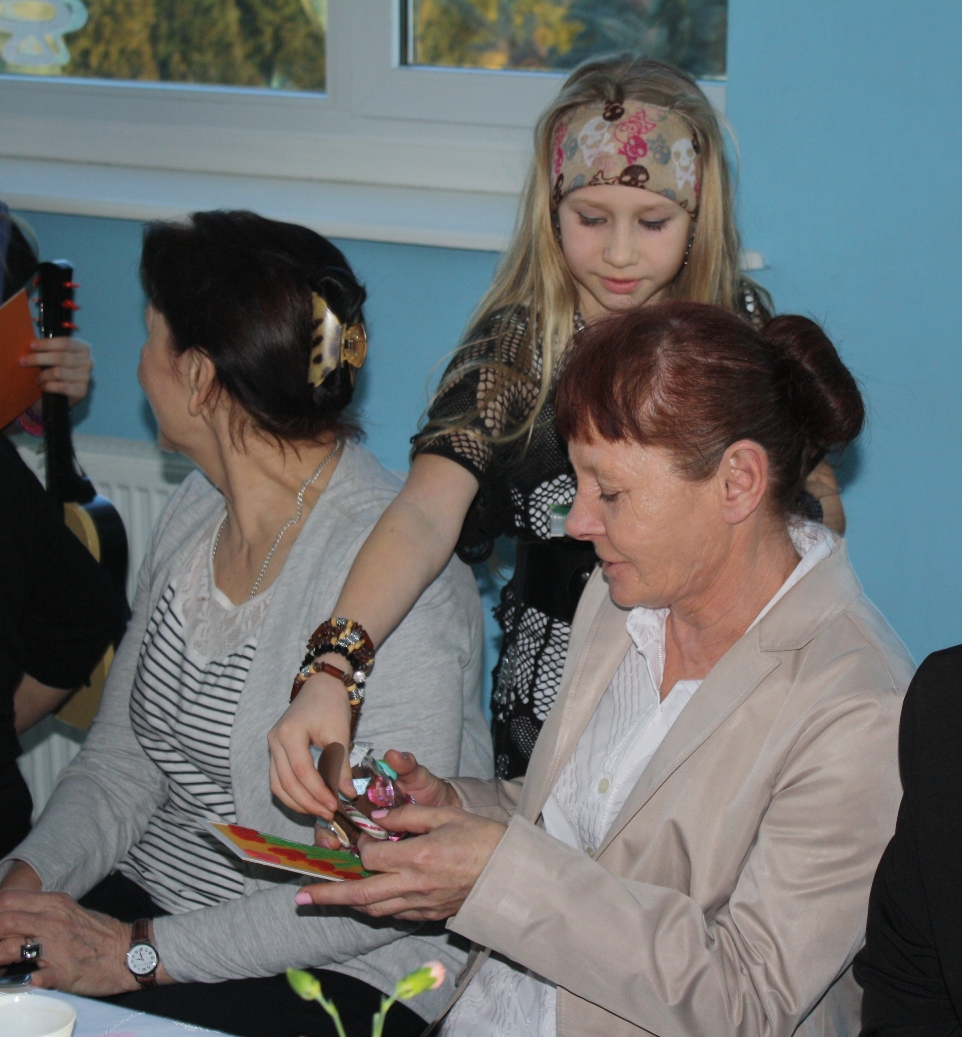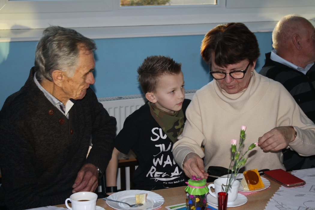 Na zakończenie programu artystycznego wszyscy uczniowie klas I-III zaśpiewali piosenkę pt. „Odlotowa babcia”, po czym dzieci obdarowały swoich wyjątkowych gości wykonanymi samodzielnie upominkami. W dalszej części uroczystości babcie i dziadkowie zostali zaproszeni na słodki poczęstunek. Spotkanie upłynęło w miłej i serdecznej atmosferze.