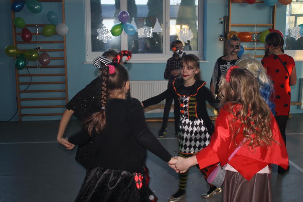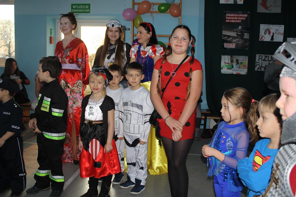 W kolorowej scenerii zabawę karnawałową poprowadził DJ Michał Kuminkiewicz – grając największe hity, przy których bawili się uczniowie, rodzice i nauczyciele. Dodatkową atrakcją były konkursy, które dostarczyły dzieciom mnóstwa radości. Można było również kupić losy w loterii fantowej i wygrać ciekawy gadżet, a także skorzystać z zakupów w sklepiku szkolnym przygotowanym specjalnie na tę okazję przez Samorząd Uczniowski. Na naszym balu nie zabrakło księżniczek, czarownic, piratów, policjantów, bohaterów bajek i filmów, a nawet panny młodej – uczniowie nie zawiedli w swej pomysłowości na przebranie karnawałowe. Tańce przy muzyce przerywał krótki odpoczynek na poczęstunek w salach lekcyjnych, który został zorganizowany przez Radę Rodziców.