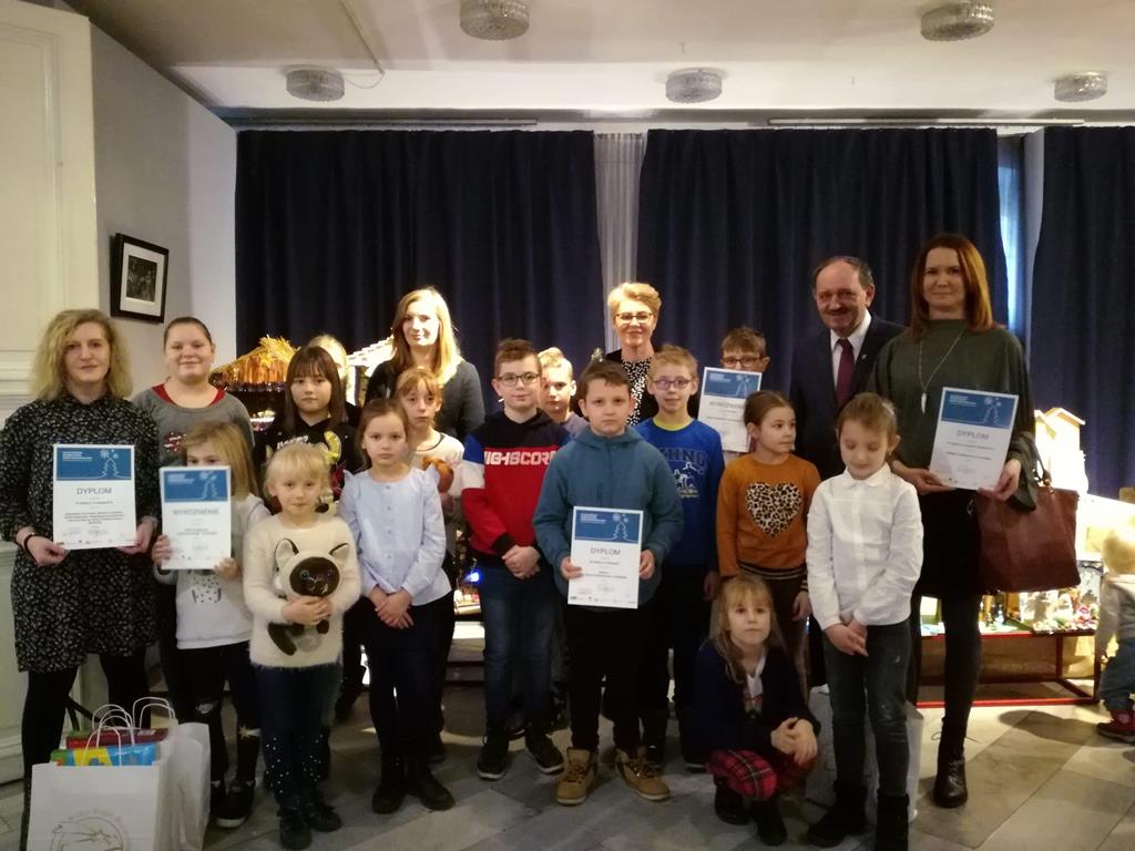 Nagrody i wyróżnienia były przyznawane w pięciu kategoriach, a nasi uczniowie oraz nauczyciele okazali się laureatami trzech kategorii. Zatem można śmiało powiedzieć, że odnieśliśmy wielki sukces, ponieważ oddział przedszkolny z wychowawczynią p. Emilią Napierałą zdobył III nagrodę, klasa V z wychowawczynią p. Bernadetą Kucharską zdobyła III nagrodę, szopka wykonana przez nauczycieli: Magdaleną Lewartowską, Barbarę Jarońską, Bernadetę Kucharską i Emilię Napierałę zdobyła III nagrodę, a kółko plastyczne „Kolorowe Kredki” prowadzone przez p. Bernadetę Kucharską otrzymało wyróżnienie.