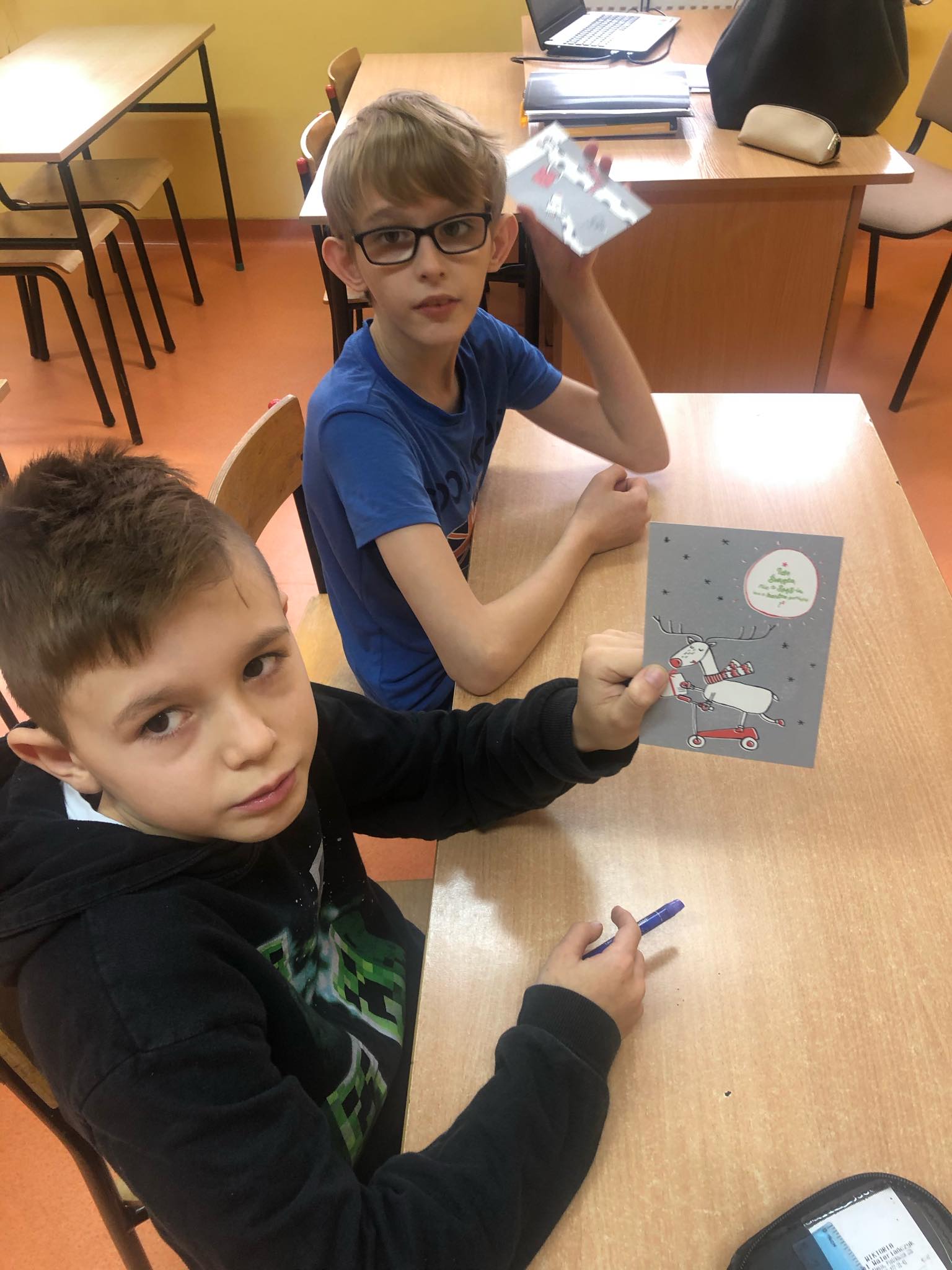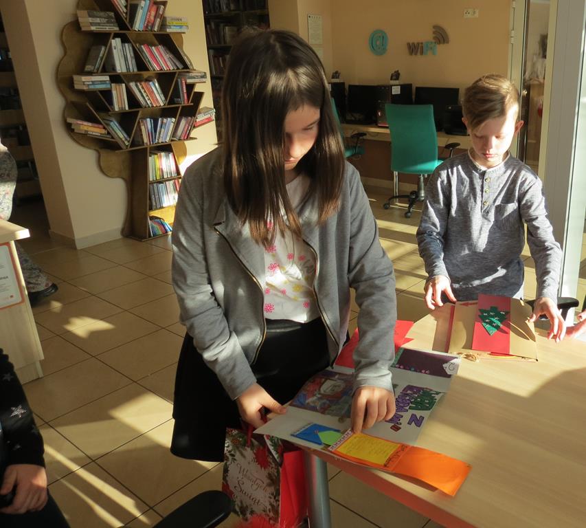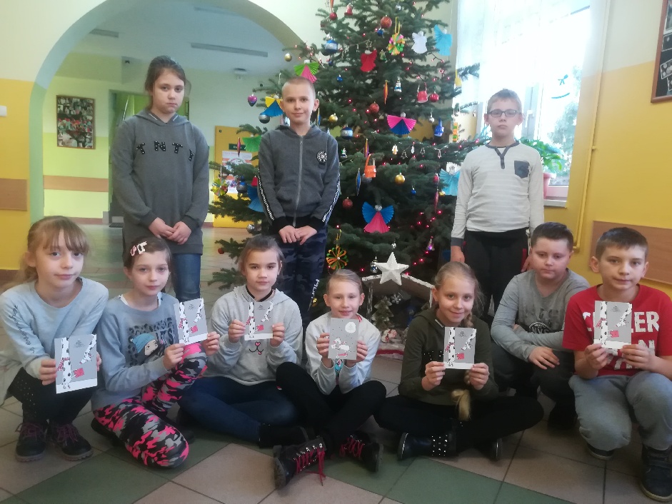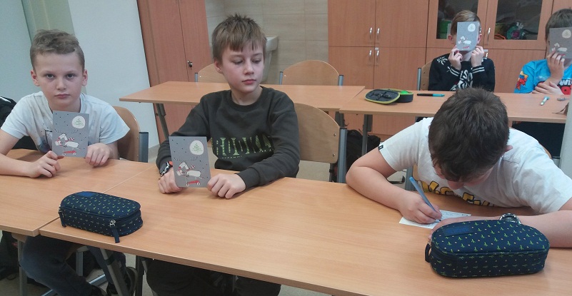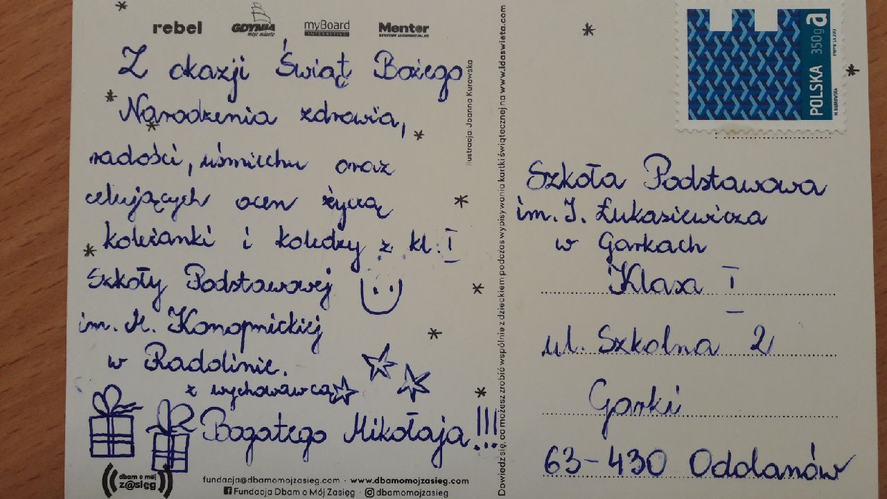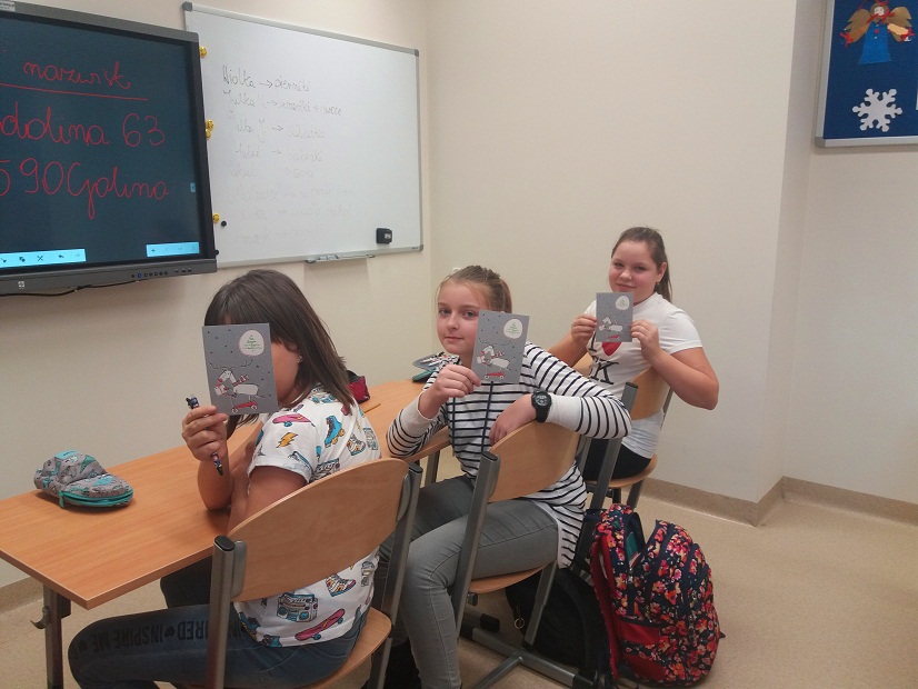 Fundacja przesłała do szkoły kartki świąteczne i plakat z tytułowym hasłem. Naszym zadaniem było zaadresować kartki i wysłać je do osób starszych, samotnych, przebywających w szpitalach, domach opieki społecznej lub do innych instytucji. Co z przyjemnością uczyniliśmy, bo już wiemy dlaczego warto wysyłać kartki, a nie sms-y ! :-)