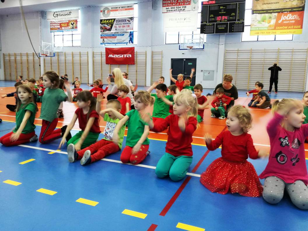 „W podróż dookoła tańca-dzieci ratują święta”. Przedszkolaki z Gminy Golina, które były obecne na warsztatach miały nie lada misję, ponieważ musiały wykonać wiele zadań tanecznych, żeby odnaleźć Mikołaja.