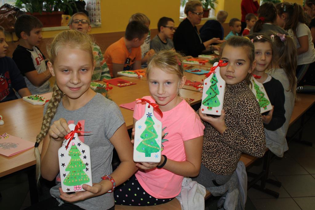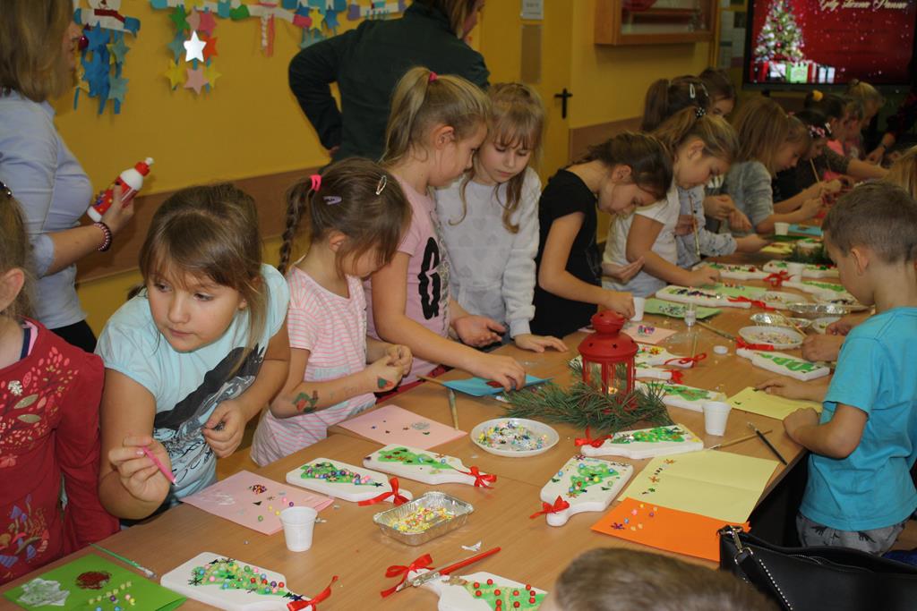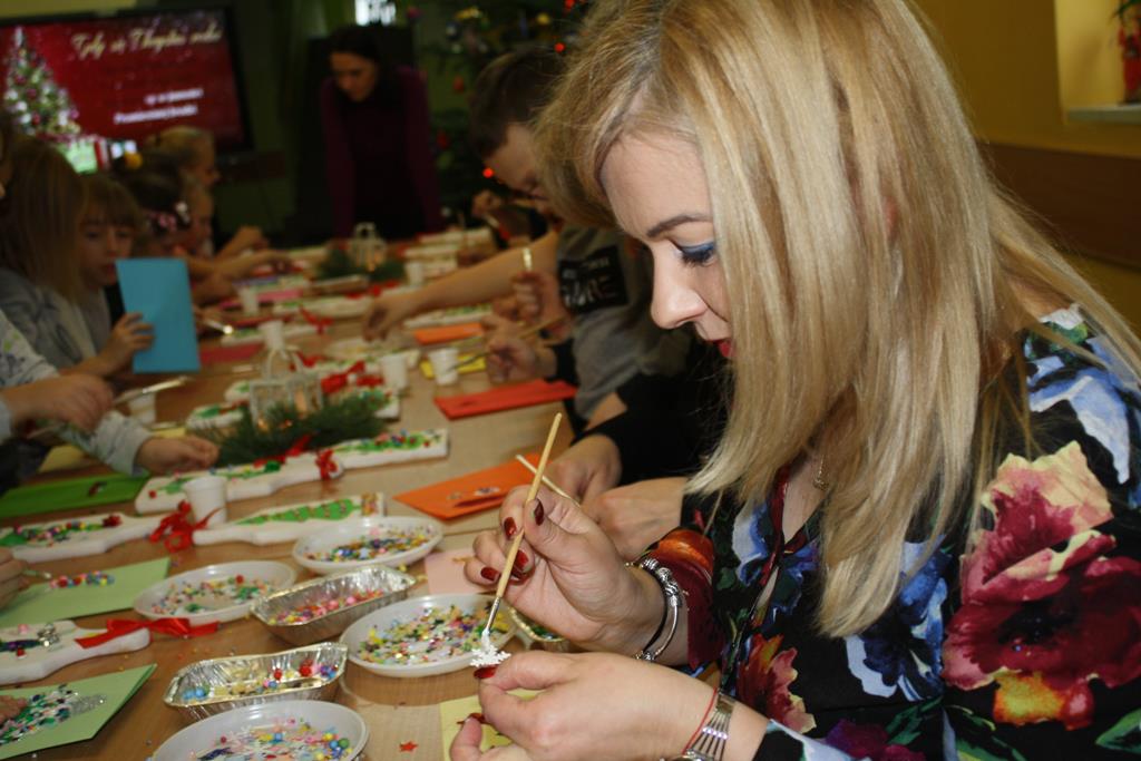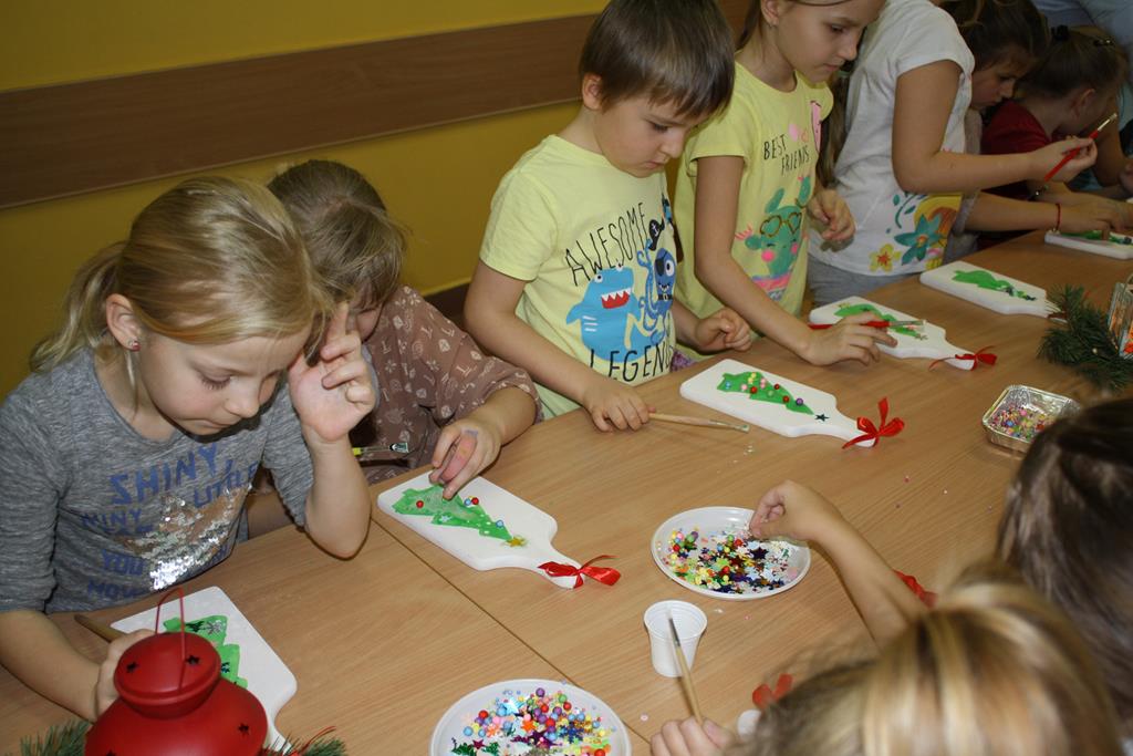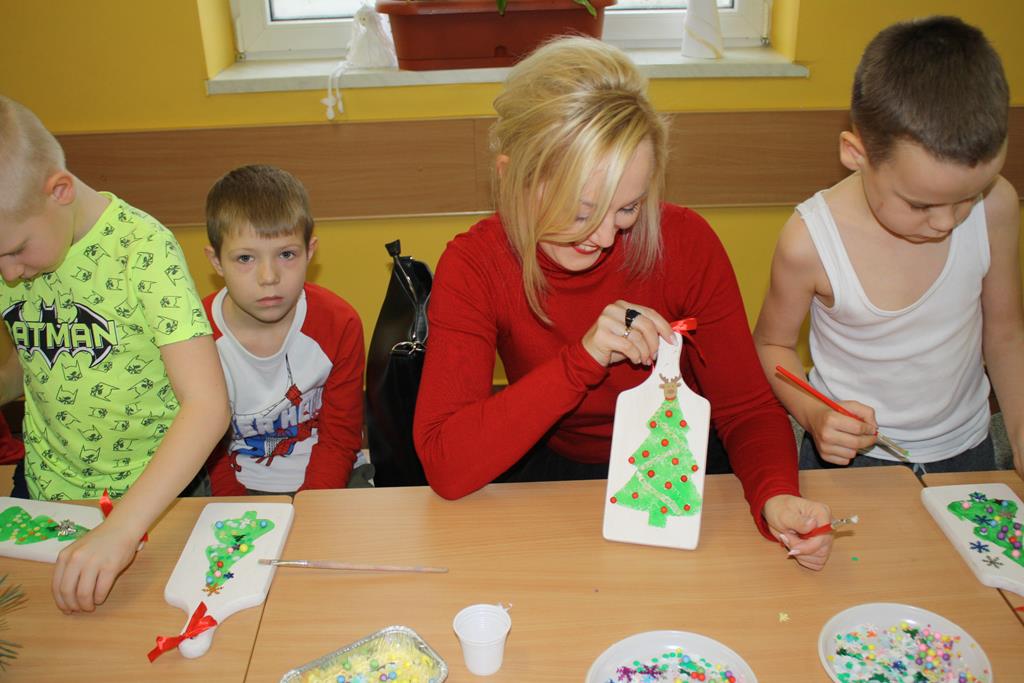 W rodzinnej atmosferze powstały pełne uroku, dość nietypowe ozdoby świąteczne. Uczestnicy z wielkim zapałem ozdabiali deseczki kuchenne wykazując przy tym niezwykłą pomysłowość i kreatywność. W czasie między wysychaniem farby, a nakładaniem ozdób radośnie rozbrzmiewał śpiew kolęd. Zorganizowane warsztaty były niesamowitym przeżyciem. Zarówno dzieciom, jak i dorosłym towarzyszyła radość tworzenia i przyjemność z poznania różnych technik ozdabiania przedmiotów. Ta wspólna praca pozwoliła nam zbliżyć się do siebie, poczuć atmosferę przedświątecznych przygotowań, a przede wszystkim zrelaksować się.