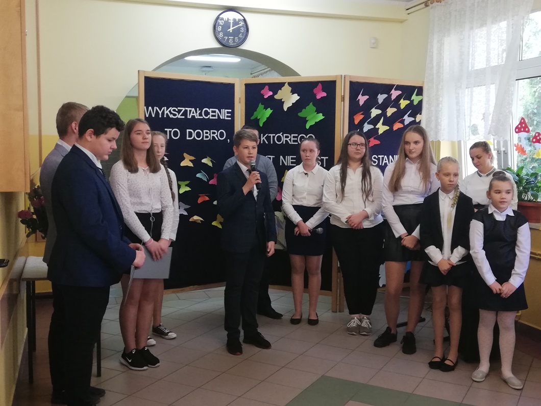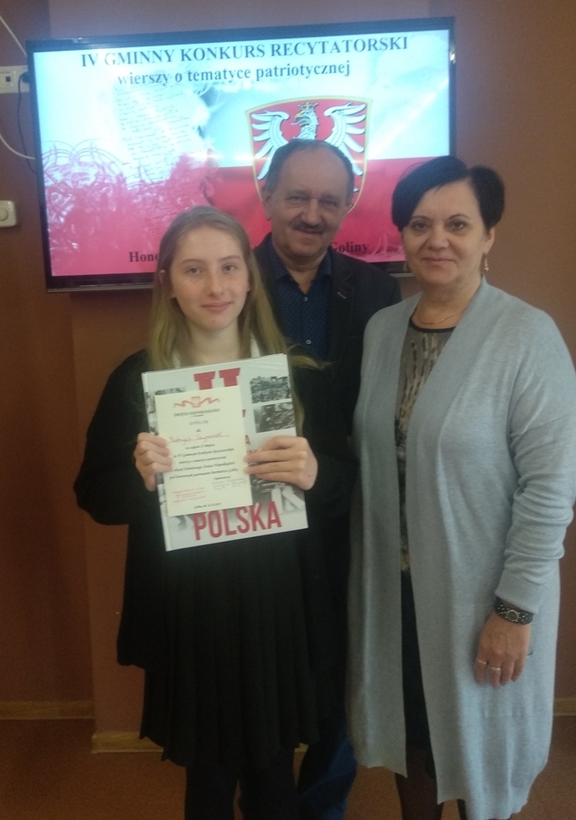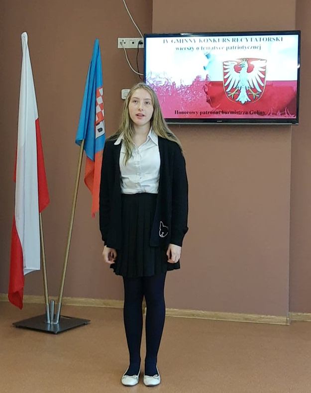 Naszą szkołę reprezentowała uczennica klasy VII Patrycja Szymczak, która recytowała wiersz Wisławy Szymborskiej pt. ,,Gawęda o miłości do ziemi ojczystej” i zajęła II miejsce.