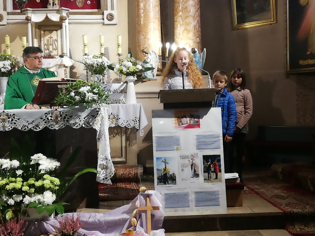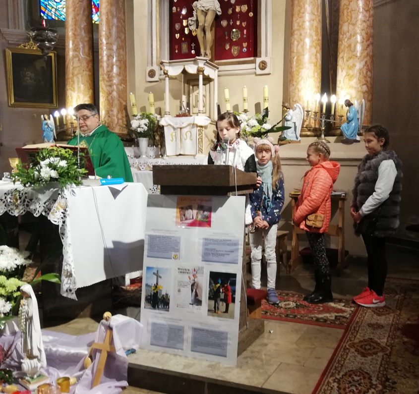 W niedzielę 13.10 na obu mszach świętych, uczniowie klasy III, V oraz VIII włączyli się w oprawę liturgii oraz zbiórkę pieniędzy na stypendia dla zdolnej polskiej młodzieży z niezamożnych i ubogich rodzin.