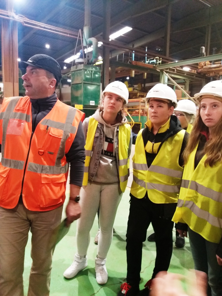 Celem naszej wizyty było popularyzowanie wśród młodzieży zawodów niezbędnych dla lokalnego rynku pracy, poznanie specyfiki pracy w zakładzie produkcyjnym, różnorodności stanowisk pracy, a także poznanie fizycznych czynników środowiska pracy, maszyn, urządzeń oraz technologii produkcyjnych dominujących w firmie Wienerberger.
