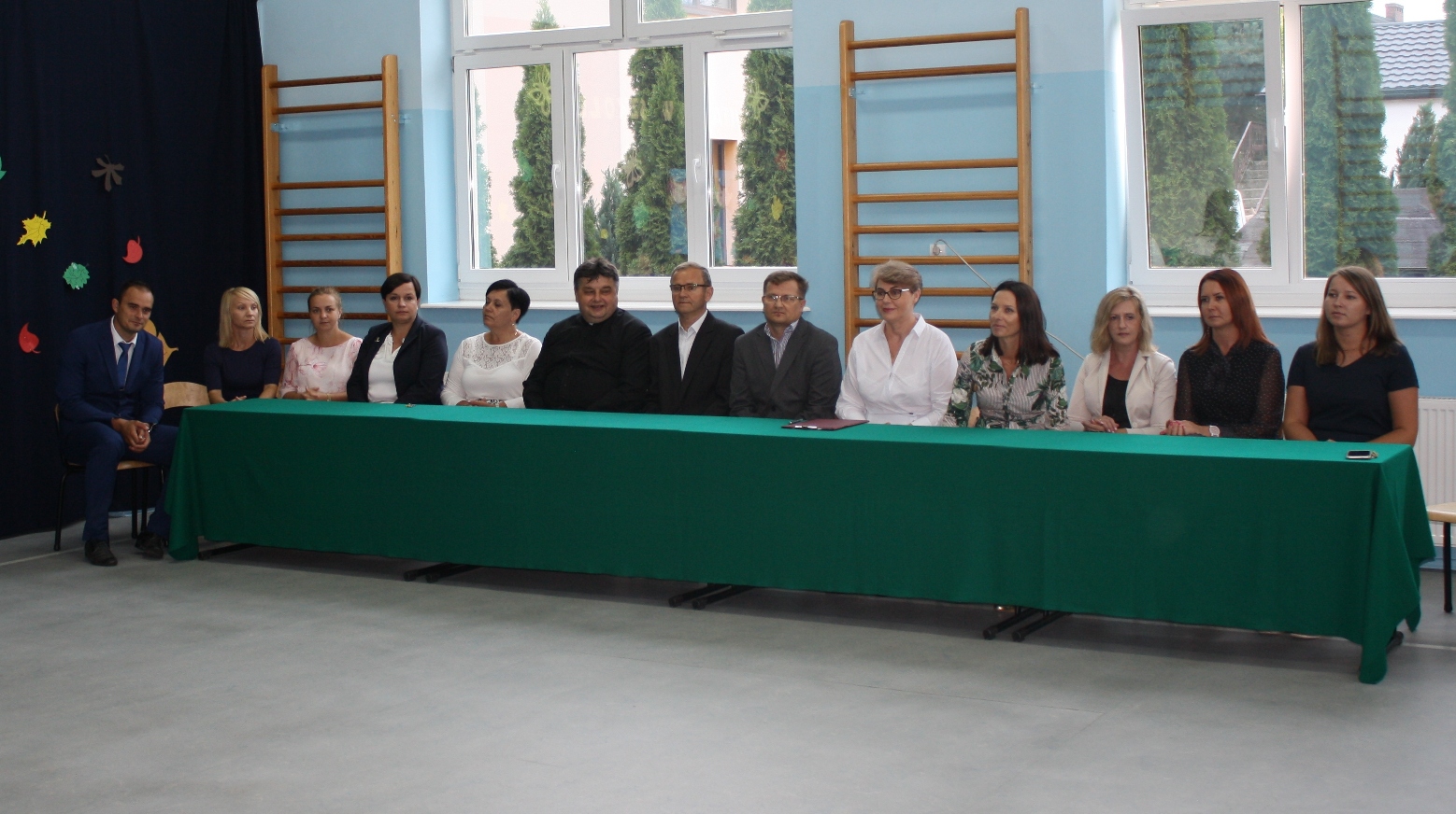 Dzieci i ich rodziców, zebranych w sali gimnastycznej, przywitała Dyrektor Szkoły, pani Alina Kozłowska. Pani Dyrektor ciepłe słowa skierowała szczególnie do uczniów klasy pierwszej i czwartej, którzy rozpoczną swoją edukację pod opieką nowej wychowawczyni. Przedstawiła również nauczycieli, którzy będą pełnić wychowawstwo w pozostałych klasach. Złożyła również u progu nowego roku szkolnego życzenia: Nauczycielom - satysfakcji z wykonywanej pracy; inspiracji do wprowadzania nowych rozwiązań metodycznych na zajęciach z dziećmi i młodzieżą oraz dobrej atmosfery pracy. Niech uda się Państwu zrealizować wszystkie zamierzenia, zarówno w życiu zawodowym, jak i osobistym. Uczniom życzył, by potrafili w pełni wykorzystać czas przeznaczony na naukę, by umieli rozwijać swoje zainteresowania artystyczne i sportowe, by we właściwy sposób decydowali o dalszych losach edukacyjnych i zawodowych.Do Rodziców natomiast Pani Dyrektor skierowała życzenia, by nowy rok szkolny przyniósł wiele okazji do dumy i radości z osiągnięć dzieci. Wyraziła wiarę, że nasza szkoła będzie dla Rodziców miejscem otwartym i przyjaznym. Życzyła również dobrej współpracy z nauczycielami, wychowawcami i opiekunami.