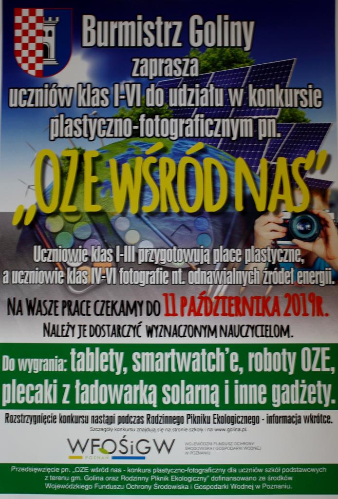 imgBurmistrz Goliny zaprasza uczniów klasy I-VI do udziału w konkursie plastyczno-fotograficznym pn. "OZE WŚRÓD NAS".