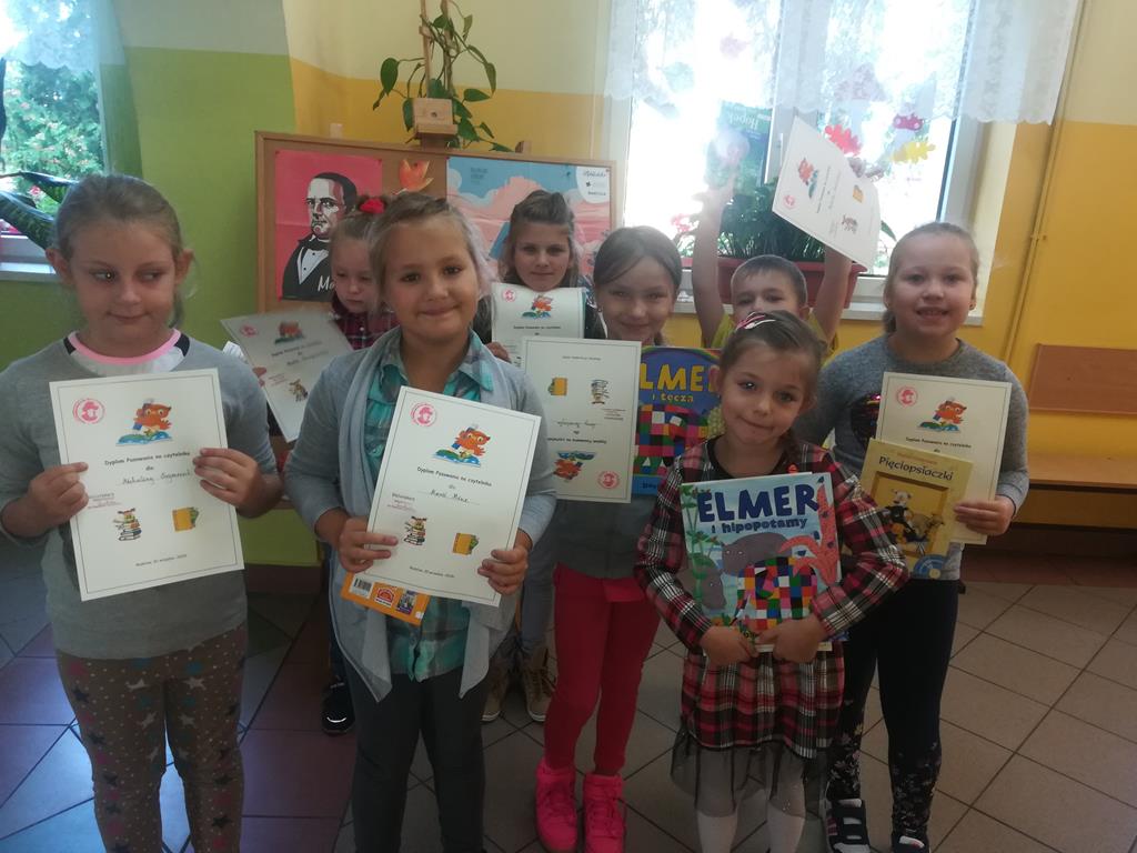 Pierwszoklasiści otrzymali zakładki do swoich książek oraz pamiątkowe dyplomy.