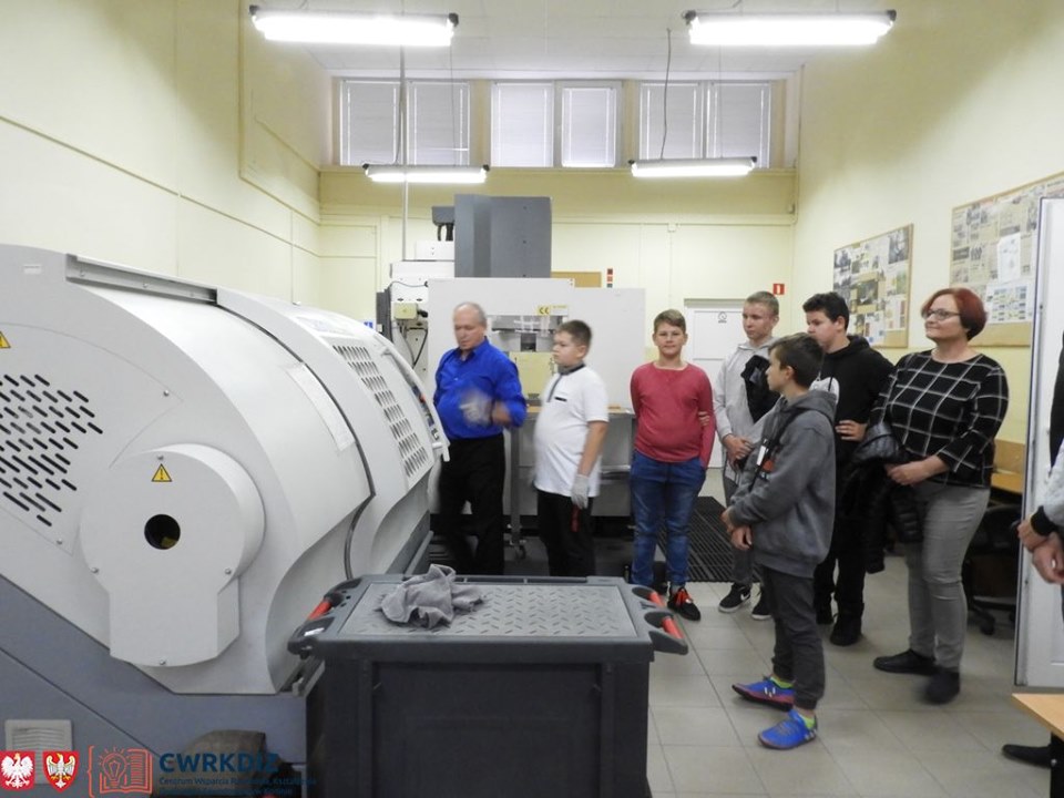 Pan Przybylski opowiedział uczniom o swoim zawodzie, zaprezentował różne rodzaje drewna, które najczęściej wykorzystuje się na stolarni, pokazał maszyny i urządzenia oraz wytłumaczył do czego służą. Uczniowie mieli okazję zobaczyć, jak wygląda cięcie płyt, oklejanie boków, wycinanie kształtów, a także składanie i produkcja mebli.