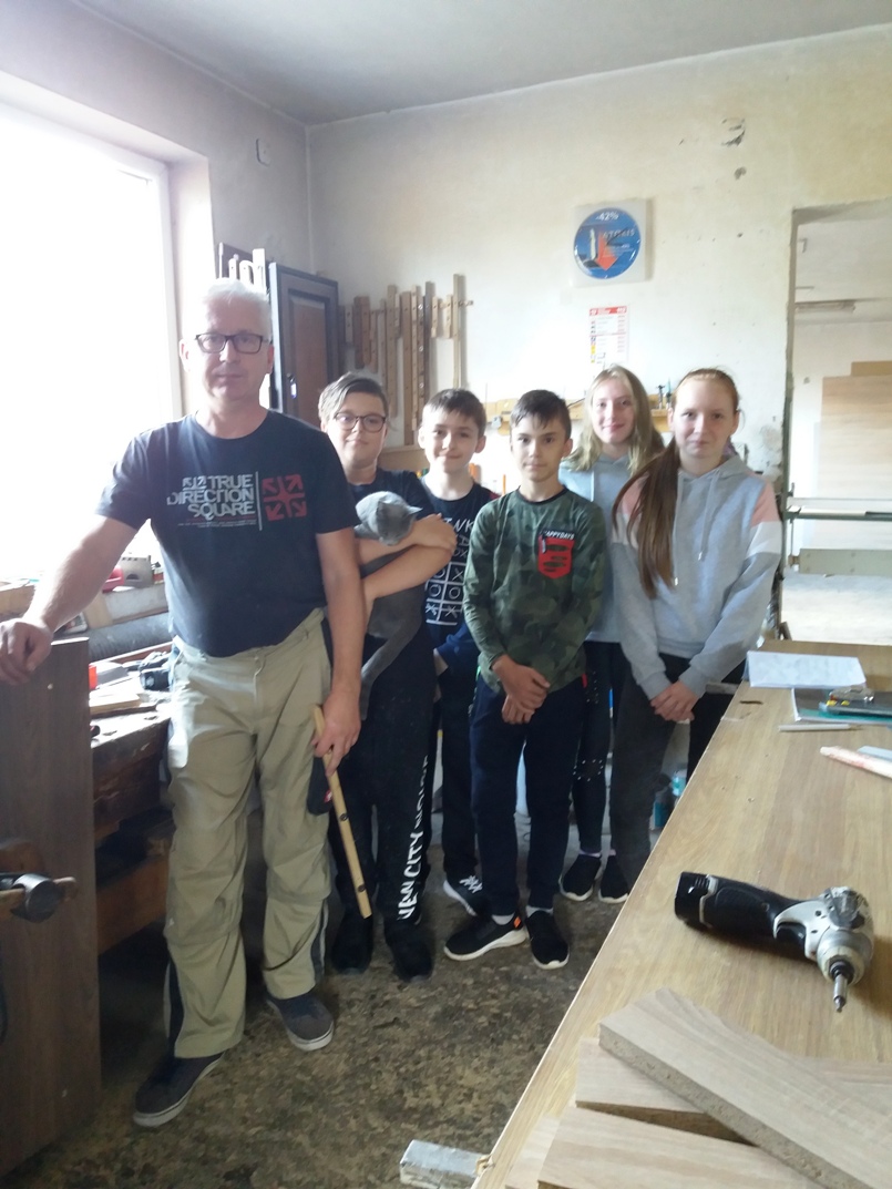 10 września 2019 roku uczniowie klasy VII z nauczycielem doradztwa zawodowego wybrali się do Zakładu Stolarskiego Pana Przybylskiego w Radolinie. Celem wizyty było kształcenie orientacji zawodowej i poznanie specyfiki pracy w zawodzie: stolarz.