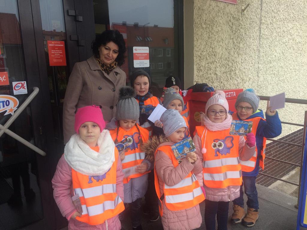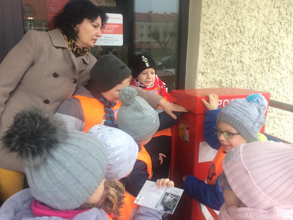 imgimgimgimgimgimgimgimgimgimgimgimg23 listopada 2018 roku dzieci z oddziałów przedszkolnych oraz uczniowie klas I-III wspólnie z wychowawcami odwiedziły Urząd Pocztowy w Koninie. Dowiedzieliśmy się tam, jak wygląda praca listonosza oraz innych osób pracujących na poczcie. Zwiedziliśmy poszczególne pomieszczenia, w których m.in. sortowane są listy i paczki. Każdy wcielił się przez chwilę w postać listonosza i doręczał list na odpowiednią półkę. Poznaliśmy również prawidłowy sposób wypełniania pocztówek oraz nadawania listów i paczek poleconych. Na koniec wysyłaliśmy pocztówki. Dzieci z zerówki wysłały listy i zdjęcia do innych przedszkoli wiejskich w ramach projektu wymiany pocztówkowej "Małe - wielkie przedszkola".