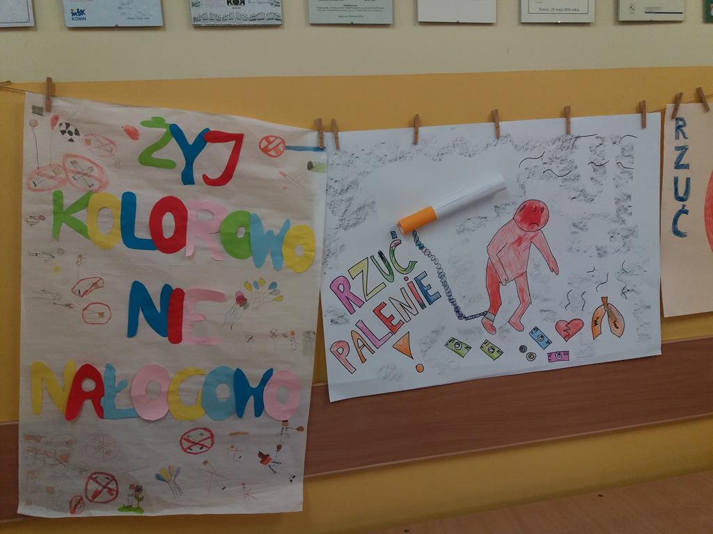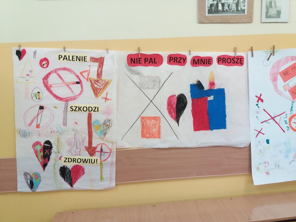 W naszej szkole została przeprowadzona akcja, której celem było promowanie zdrowia, skuteczne przekonywanie młodzieży do życia bez nałogów, bez papierosów oraz do życia w czystym, pozbawionym dymu tytoniowego powietrzu. Uczniowie wysłuchali pogadanek, a także przygotowywali plakaty zachęcające do rzucania palenia i uświadamiające jak wielkim zagrożeniem dla organizmu są papierosy.