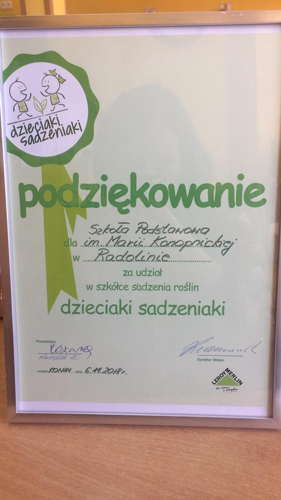 imgimgimgimgimgimgimgimgimg6 listopada 2018 roku dzieci z grup przedszkolnych udały się z wizytą do Leroy Merlin w Koninie. Tam odbyły się warsztaty edukacyjne "Dzieciaki sadzeniaki". Na początku dowiedzieliśmy się wiele interesujących wiadomości na temat znaczenia roślin w życiu człowieka i naszej planety. Poznaliśmy największe rośliny na świecie, rośliny o największych nasionach czy też rośliny owadożerne. Kolejnym punktem programu były zajęcia praktyczne tj. przesadzanie roślin doniczkowych. Każdy uczestnik warsztatów zabrał ze sobą przesadzony kwiatek oraz otrzymał pamiątkowy dyplom.