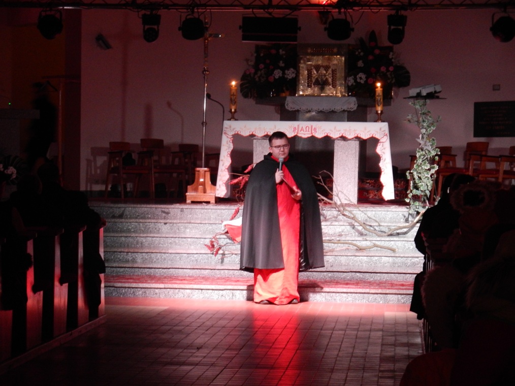 Z czasów komunizmu wywołana została postać bł. Ks. Jerzego Popiełuszki. Którego zaprezentowała parafia św. Mateusza Apostoła z Myśliborza. Ksiądz Jerzy sam zawsze mówił, że „ najcenniejsze co może ofiarować Polsce, to Msza Święta”. Dlatego jeździł po całej Polsce i głosił Słowo Boże, co nie podobało się ówczesnym władzom komunistycznym. Ksiądz Popiełuszko został zamordowany przez SB i ta właśnie scena została zaprezentowana zgromadzonym w kościele.