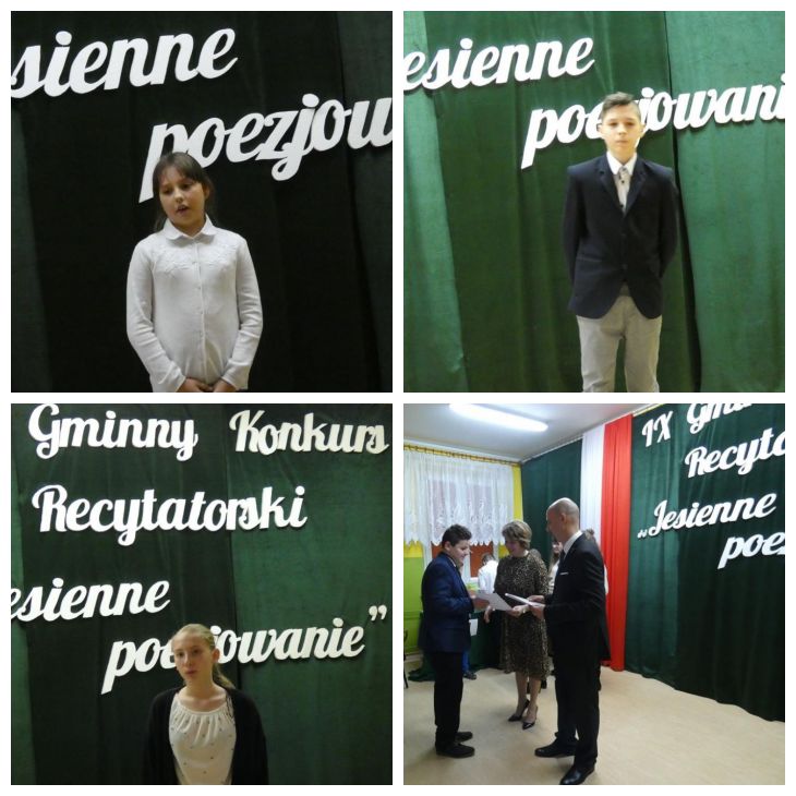 Wioletta Tyderka recytowała wiersz Juliana Tuwima pt. Spóźniony słowik i zajęła III miejsce na poziomie klas IV . Klasę piątą reprezentował Dominik Czerniak – recytował wiersz Ryszarda Marka Grońskiego pt. Gdyby jesieni nam zabrakło i zajął II miejsce. W kategorii klas VI wystąpiła Patrycja Szymczak z wierszem Tadeusza Kubiaka pt. Tu wszędzie Polska. Klasę VII reprezentował Mateusz Górniak, który recytował pieśń Jana Kochanowskiego pt. Nie porzucaj nadzieje i w swojej kategorii wiekowej zajął II miejsce.